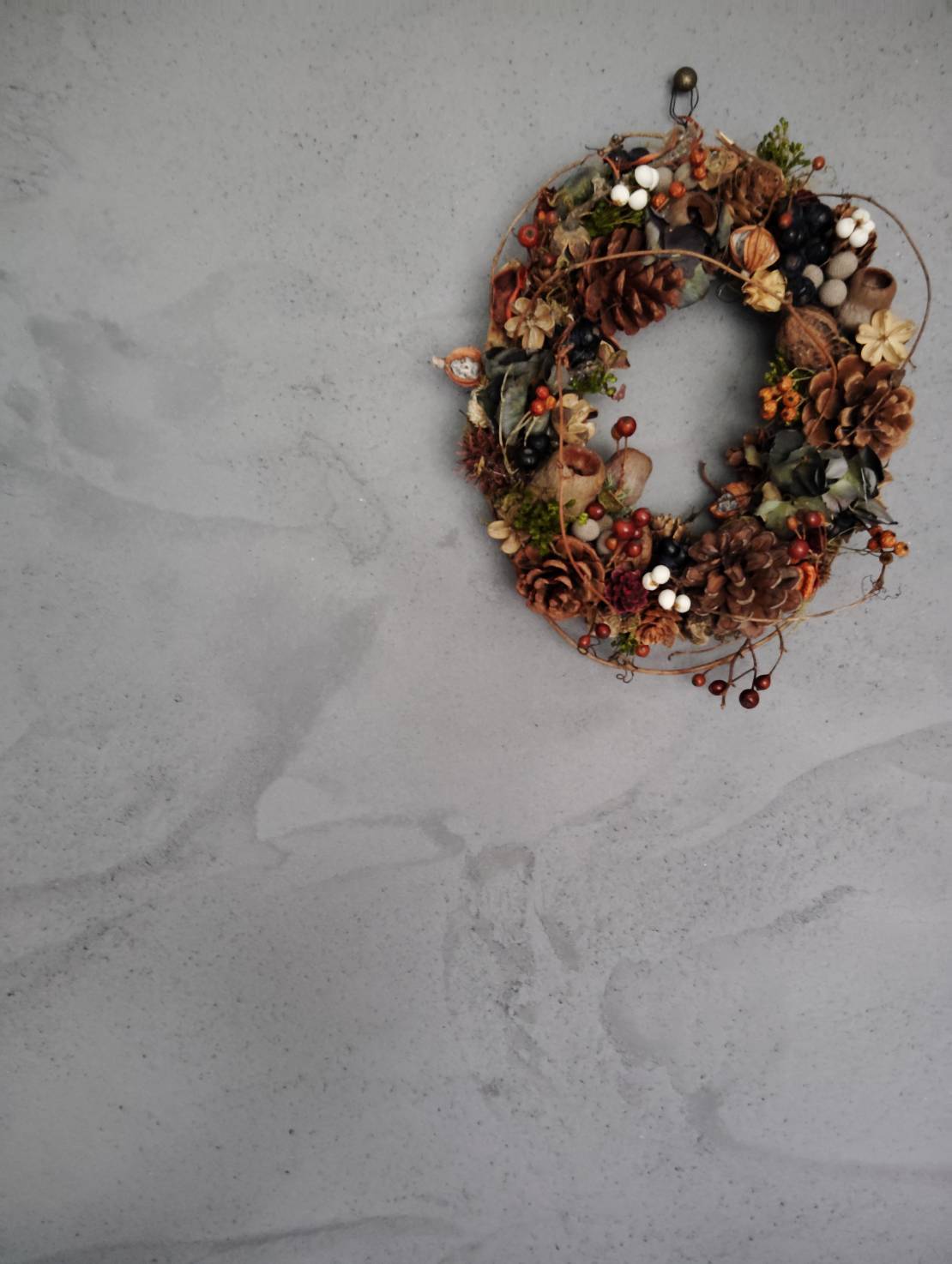 ぜひ素敵な空間でクリスマスリースを作りにきませんか?作品が出来上がったら、映える漆喰壁でリースの撮影会をしましょう~映える事まちがいなしです。